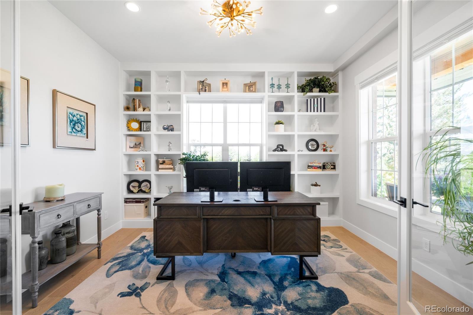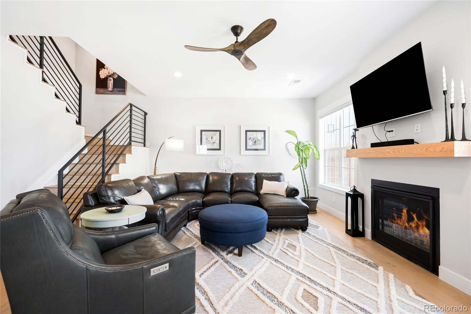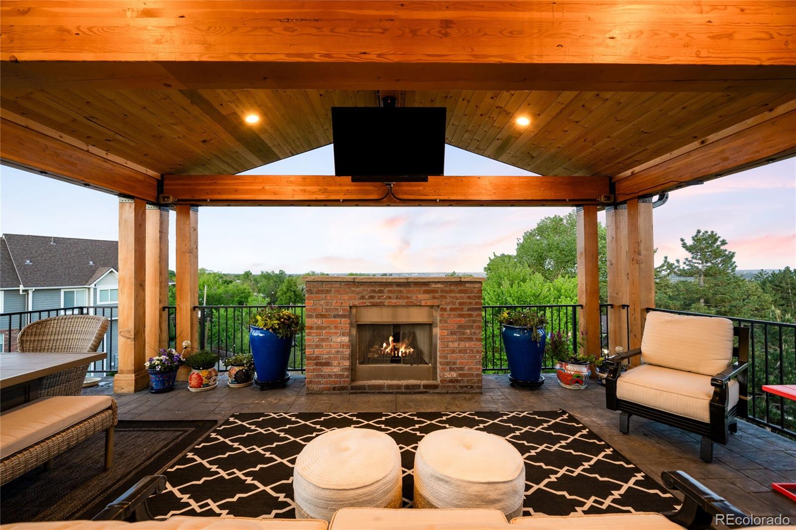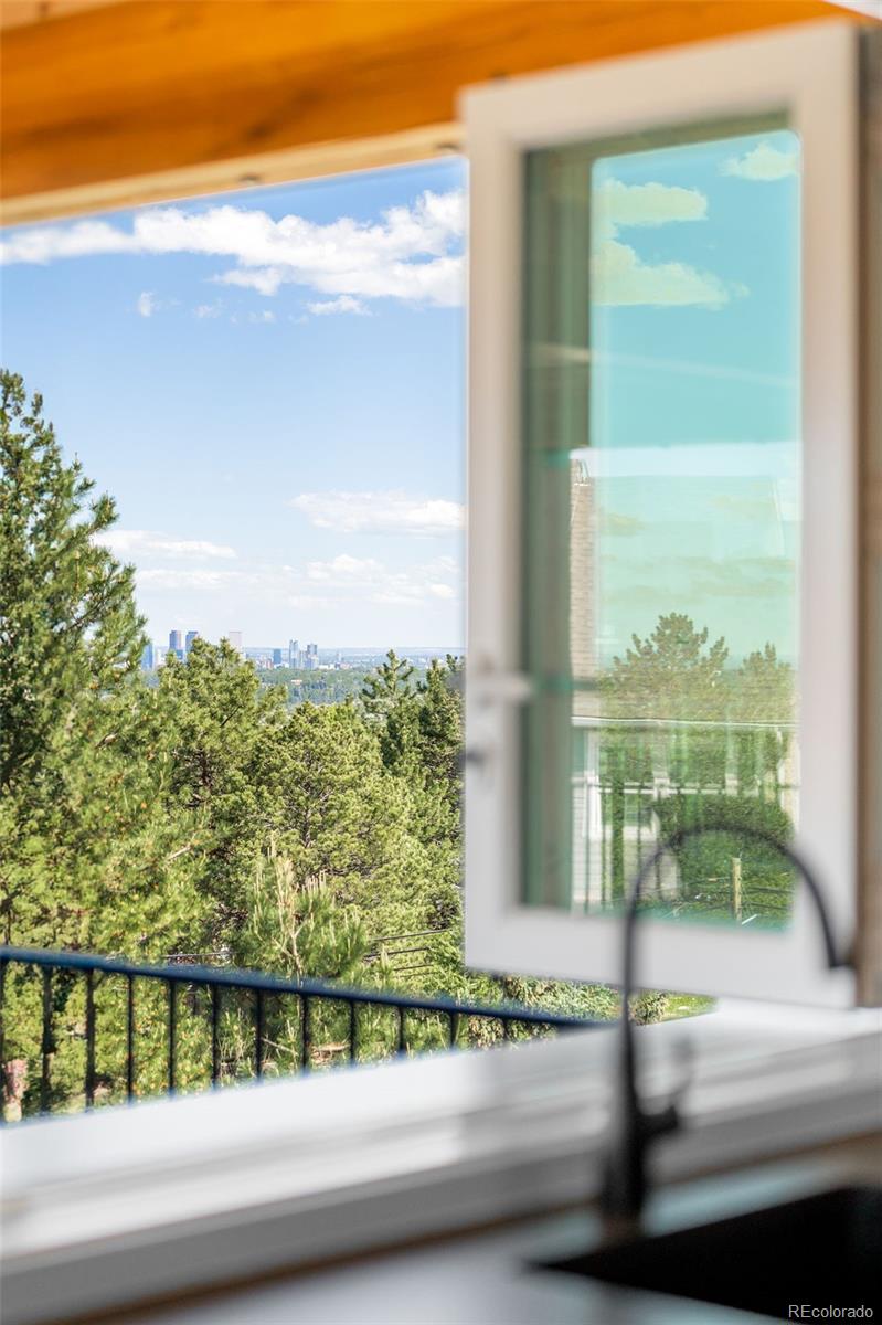 Perched atop a scenic hillside in Hillside Cottages, this model home masterpiece is crafted by esteemed local builder Royal Oak Homes. With unobstructed mountain and city views, this residence is a showcase of elevated living, filled with natural light and refined finishes. The south/east-facing corner lot enjoys premium end placement and privacy. Inside, 8-foot solid core doors, wide-plank engineered hardwoods and designer touches define every space. The gourmet kitchen impresses with Cafe stainless appliances, a pot filler, vented hood, floating shelves and a statement island. A fenced yard and a covered patio extend off the main level, which also hosts a living room with a sleek fireplace, private office and mudroom area adjacent to the 2-car garage. The sun-drenched primary suite offers a private balcony, spa-like bath and a custom closet. A top-level bonus room with a wet bar opens to an expansive rooftop deck with a fireplace -- perfect for relaxing amid panoramic Colorado views.