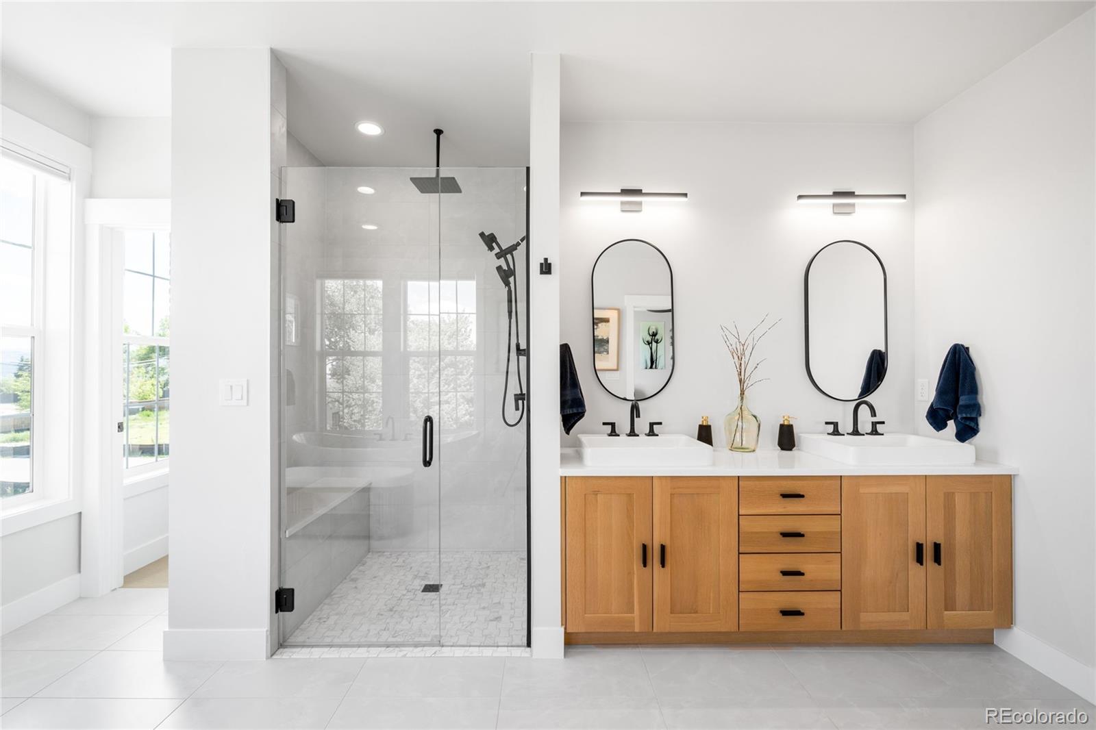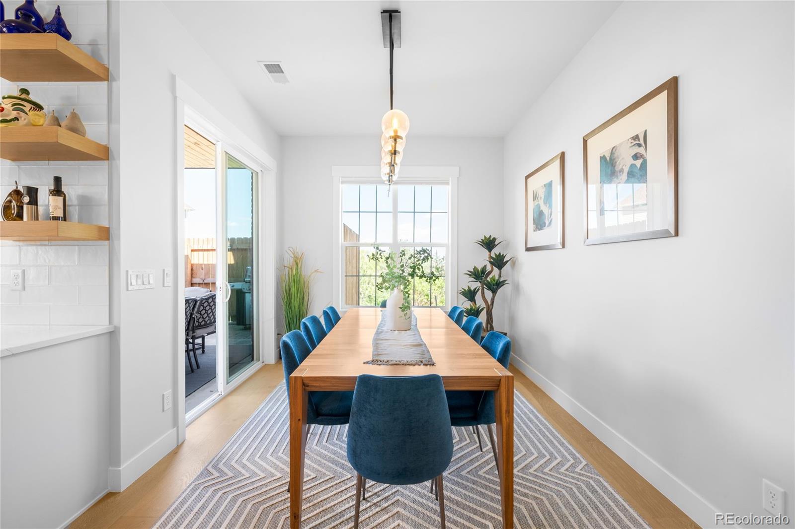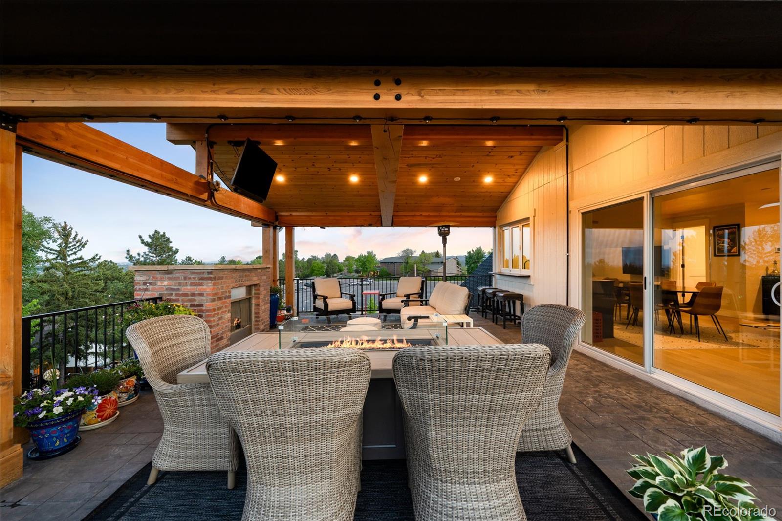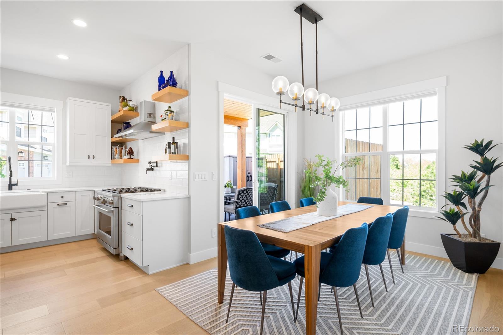 Perched atop a scenic hillside in Hillside Cottages, this model home masterpiece is crafted by esteemed local builder Royal Oak Homes. With unobstructed mountain and city views, this residence is a showcase of elevated living, filled with natural light and refined finishes. The south/east-facing corner lot enjoys premium end placement and privacy. Inside, 8-foot solid core doors, wide-plank engineered hardwoods and designer touches define every space. The gourmet kitchen impresses with Cafe stainless appliances, a pot filler, vented hood, floating shelves and a statement island. A fenced yard and a covered patio extend off the main level, which also hosts a living room with a sleek fireplace, private office and mudroom area adjacent to the 2-car garage. The sun-drenched primary suite offers a private balcony, spa-like bath and a custom closet. A top-level bonus room with a wet bar opens to an expansive rooftop deck with a fireplace -- perfect for relaxing amid panoramic Colorado views.