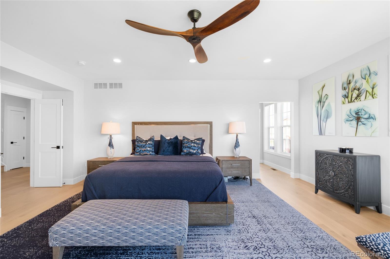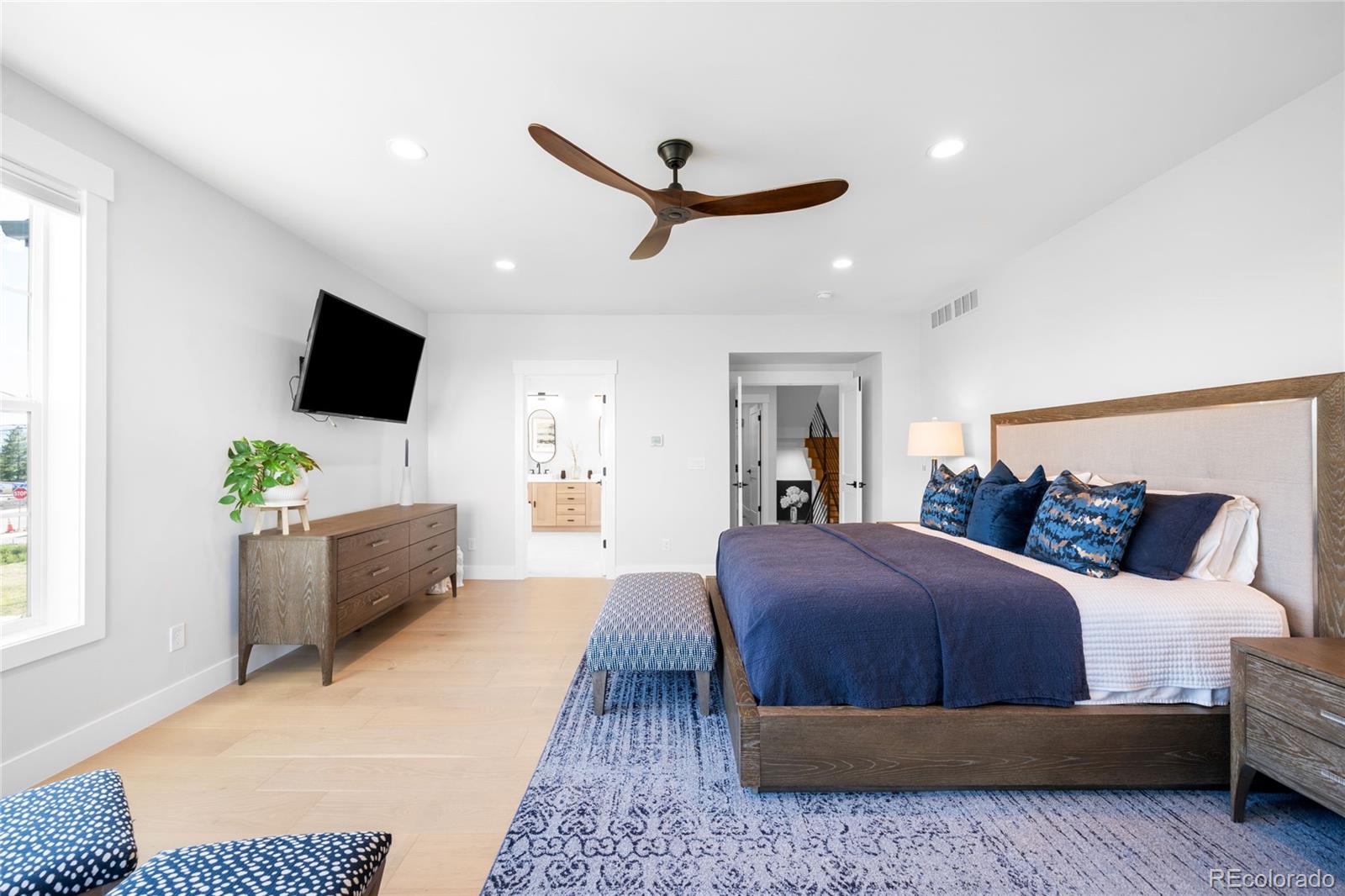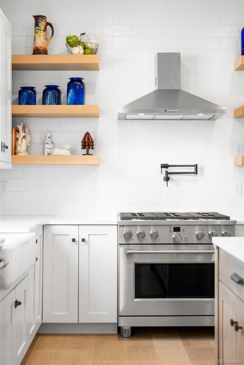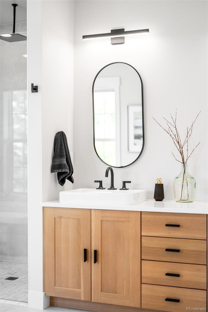 Perched atop a scenic hillside in Hillside Cottages, this model home masterpiece is crafted by esteemed local builder Royal Oak Homes. With unobstructed mountain and city views, this residence is a showcase of elevated living, filled with natural light and refined finishes. The south/east-facing corner lot enjoys premium end placement and privacy. Inside, 8-foot solid core doors, wide-plank engineered hardwoods and designer touches define every space. The gourmet kitchen impresses with Cafe stainless appliances, a pot filler, vented hood, floating shelves and a statement island. A fenced yard and a covered patio extend off the main level, which also hosts a living room with a sleek fireplace, private office and mudroom area adjacent to the 2-car garage. The sun-drenched primary suite offers a private balcony, spa-like bath and a custom closet. A top-level bonus room with a wet bar opens to an expansive rooftop deck with a fireplace -- perfect for relaxing amid panoramic Colorado views.